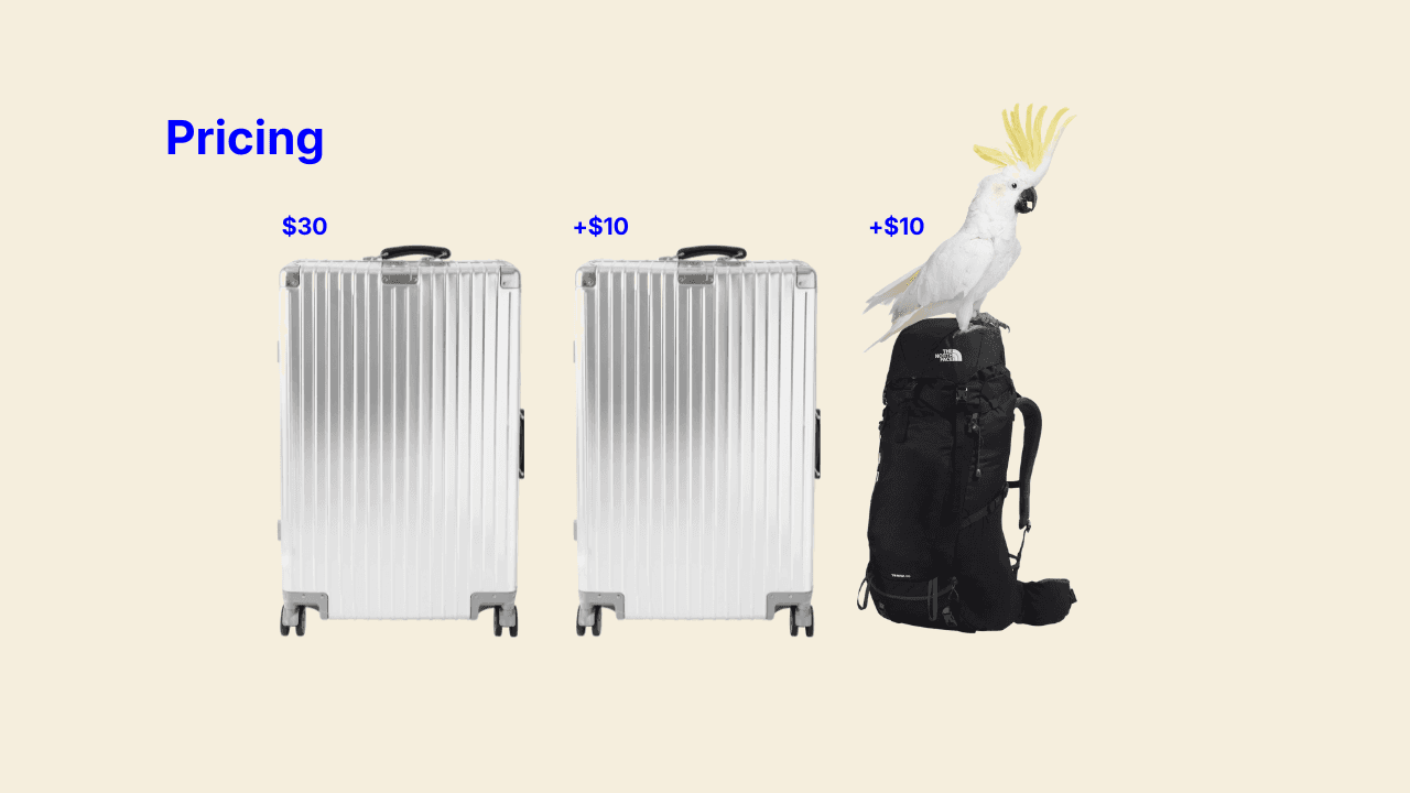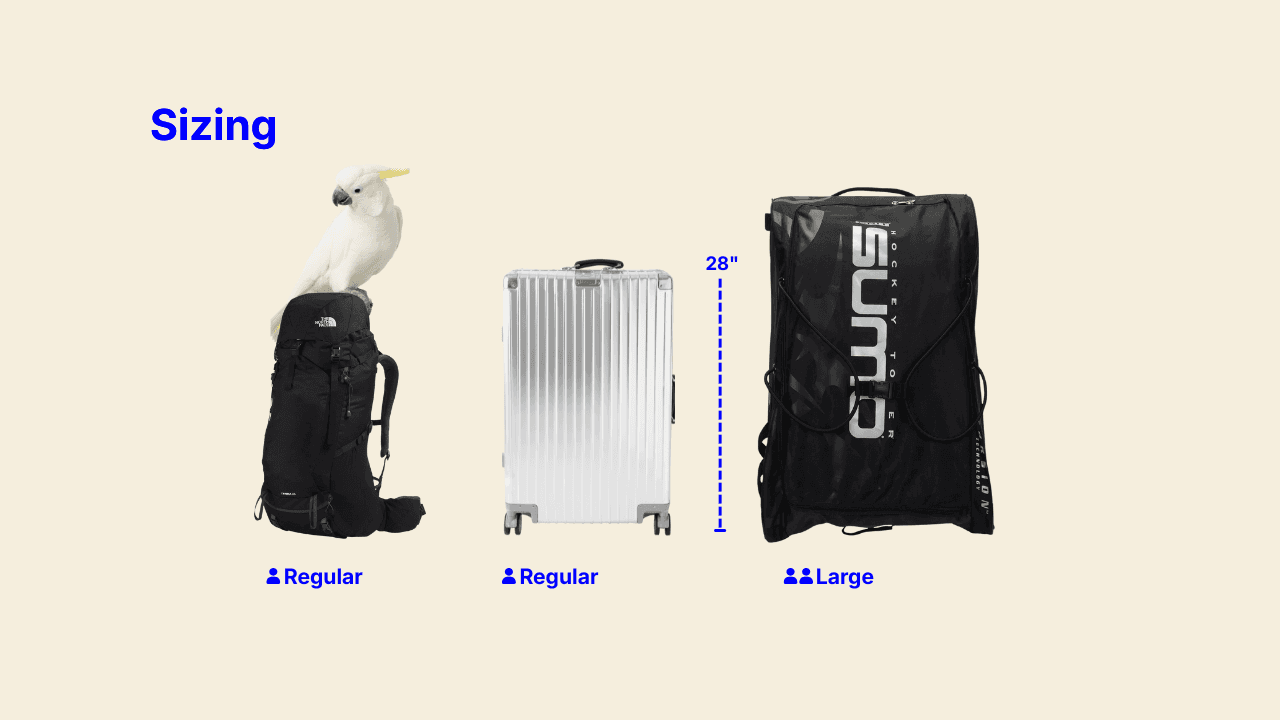 Sizing: if your bag is over 50lb or 28" on any side, it may incur a $5 surcharge.